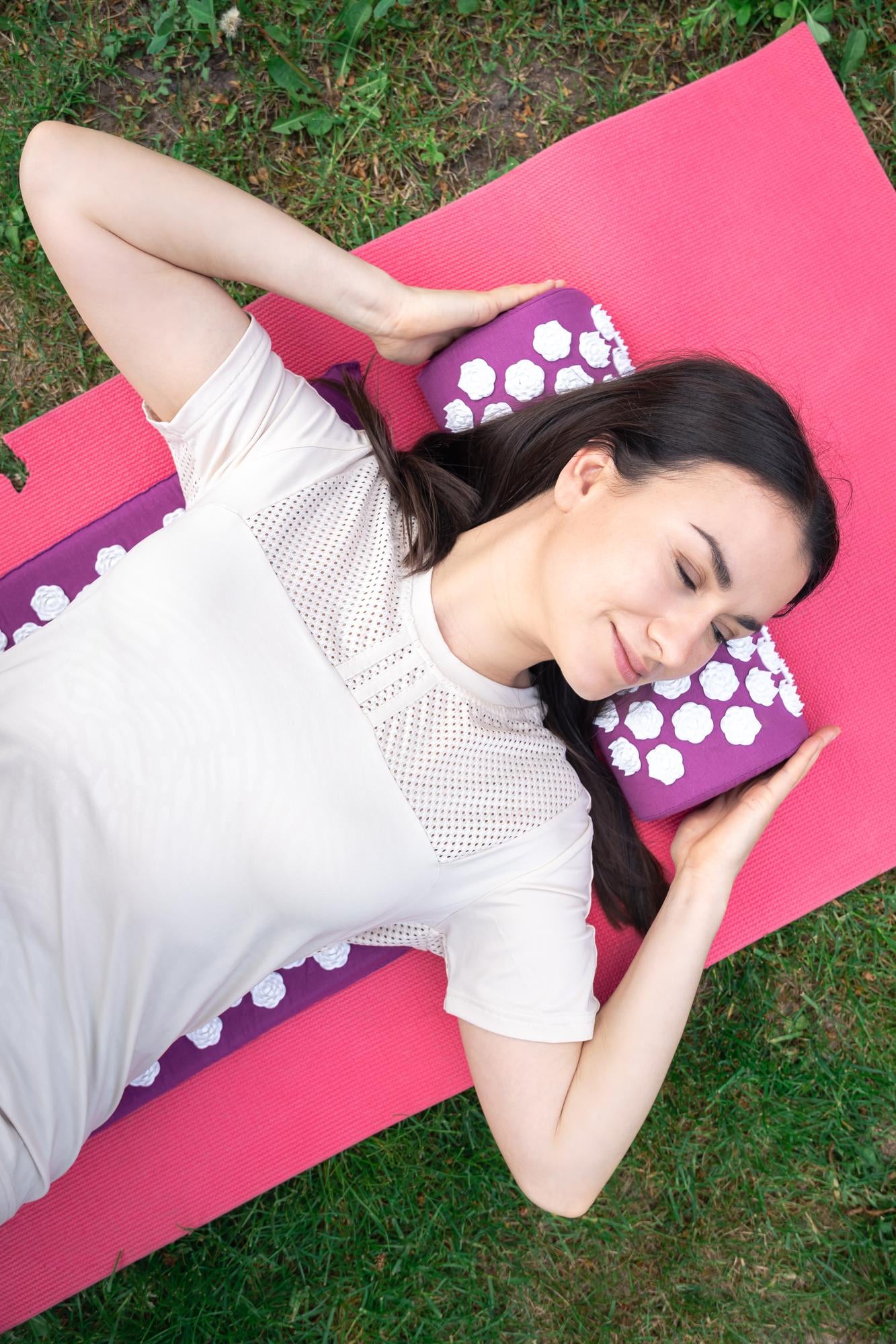 The mat gently stimulates pressure points along your back, neck, and shoulders.