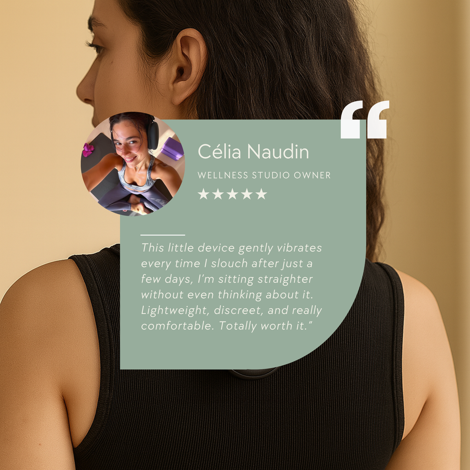 Every time your back curves forward, the device vibrates — helping you naturally realign your spine and retrain your posture over time.